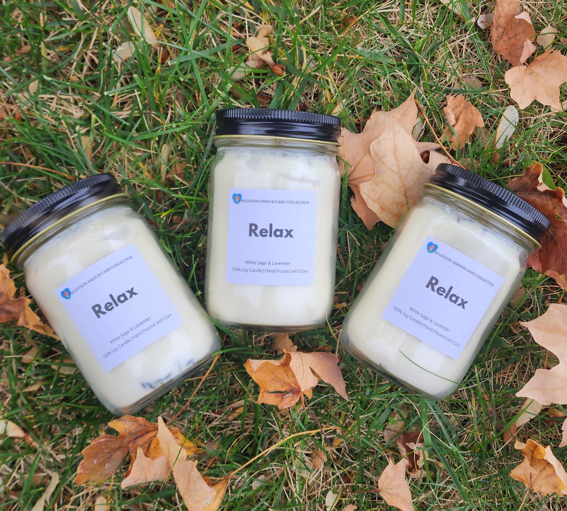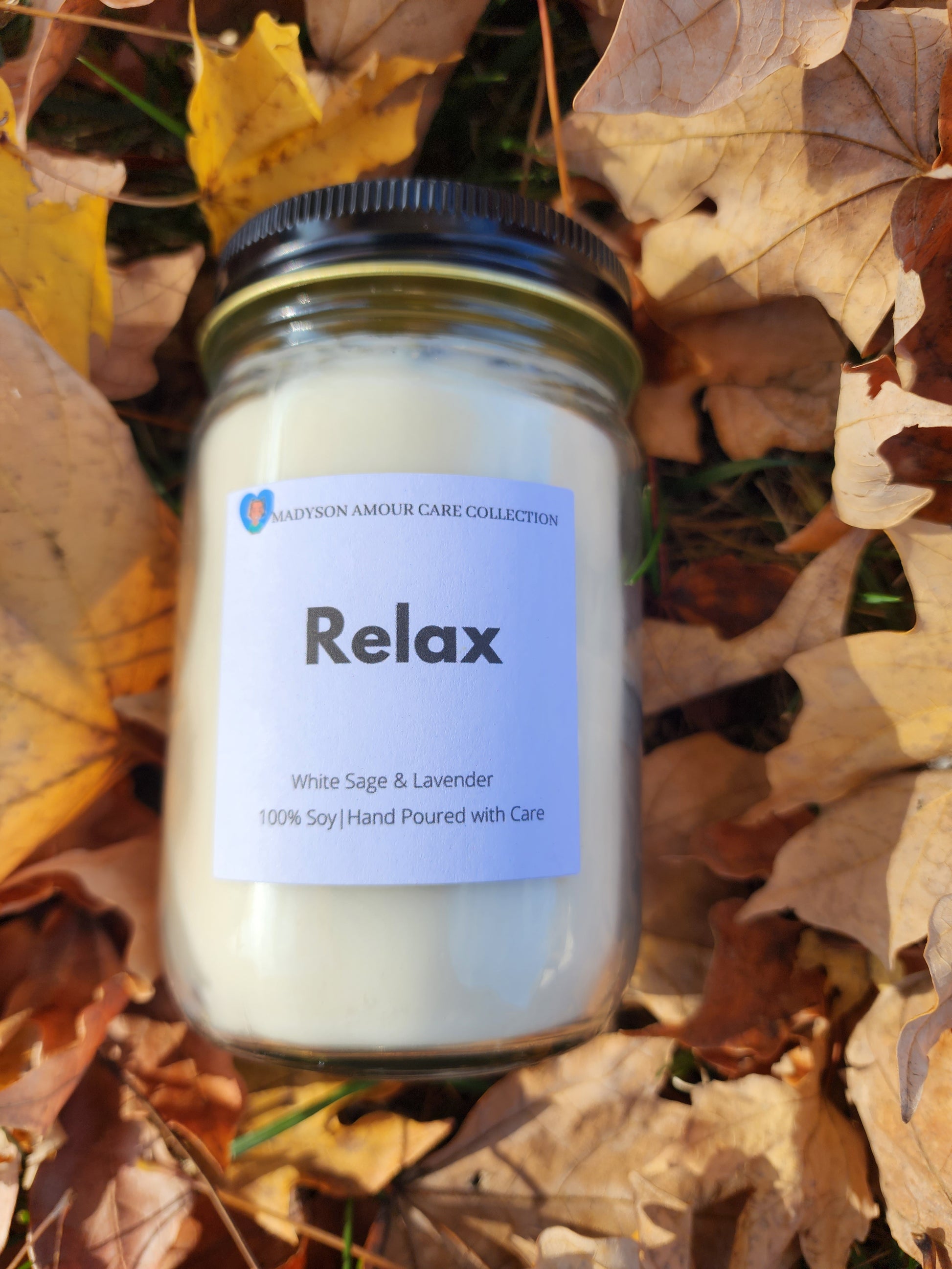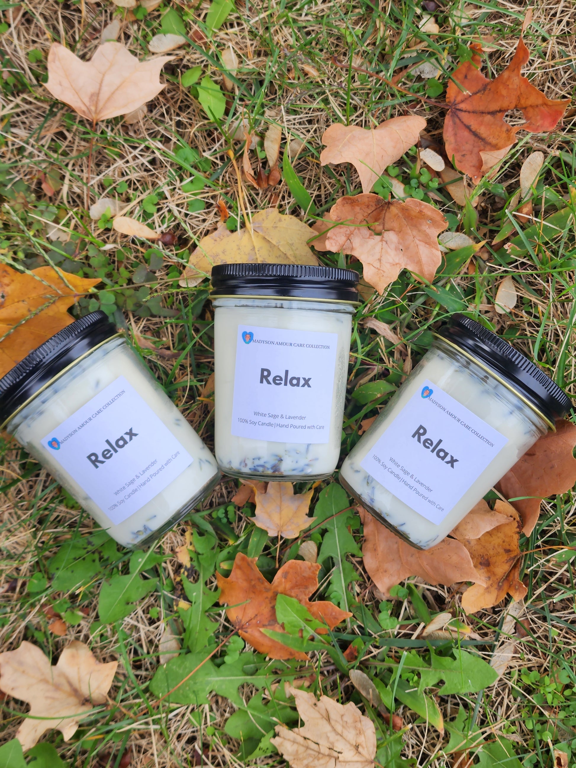 Grab your Relax Soy Candle (White Sage & Lavender) and enjoy the calming aroma. Loved by both men and women this White Sage & Lavender is a clean and simply "relaxing" fragrance. Think of white sage and lavender as a relaxing spa feel. This is a popular scent used at baby showers, gender revels and daily relaxation. Gives a soft clean smell.